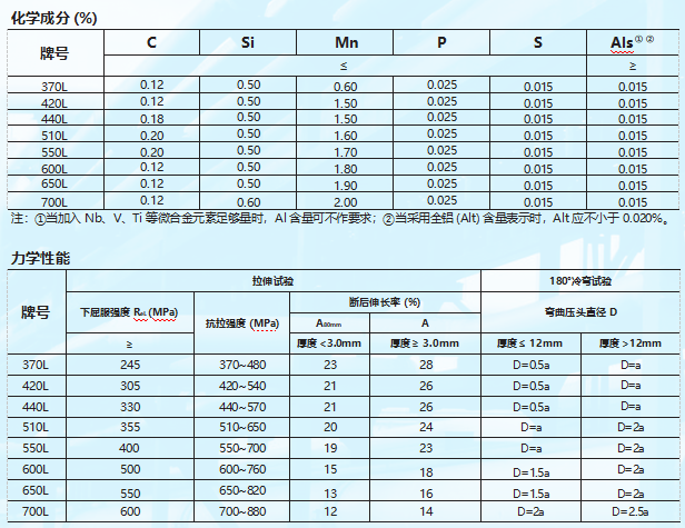 大梁是載貨車主要的承載部件,幾乎承載著貨物全部的重量,大梁的質(zhì)量影響整車的使用壽命與行車安全,制造??汽車大梁一般采用沖壓成型工藝,其變形方式以彎曲為主,因此大梁板對(duì)成型性要求較高。普陽(yáng)可生產(chǎn)370L、420L、?440L、510L、550L、600L、650L、700L汽車大梁鋼。產(chǎn)品具有良好的強(qiáng)韌性、耐疲勞性和冷成型性。