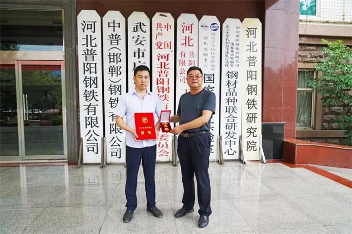7月17日上午,武安市工會(huì)常務(wù)副主席王啟良領(lǐng)導(dǎo)一行來(lái)到普陽(yáng)鋼鐵,為普陽(yáng)黨委副書(shū)記、總經(jīng)理石躍強(qiáng)頒發(fā)“河北省勞動(dòng)模范”獎(jiǎng)?wù)录皹s譽(yù)證書(shū)。公司總經(jīng)理石躍強(qiáng)和辦公室主任楊建軍進(jìn)行了熱情接待。