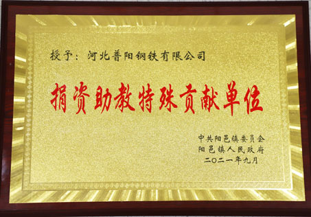 陽(yáng)邑鎮(zhèn)黨委書(shū)記王日田向普陽(yáng)頒發(fā)了“捐資助教特殊貢獻(xiàn)單位”榮譽(yù)獎(jiǎng)牌。
