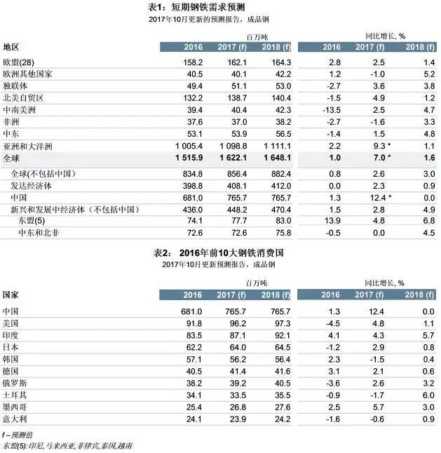 世界鋼鐵協(xié)會預(yù)測,2017年全球除中國外的鋼鐵需求將增長2.6%,達(dá)到8.564億噸,2018年增長3.0%,達(dá)到8.8824億噸。