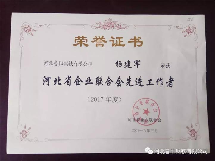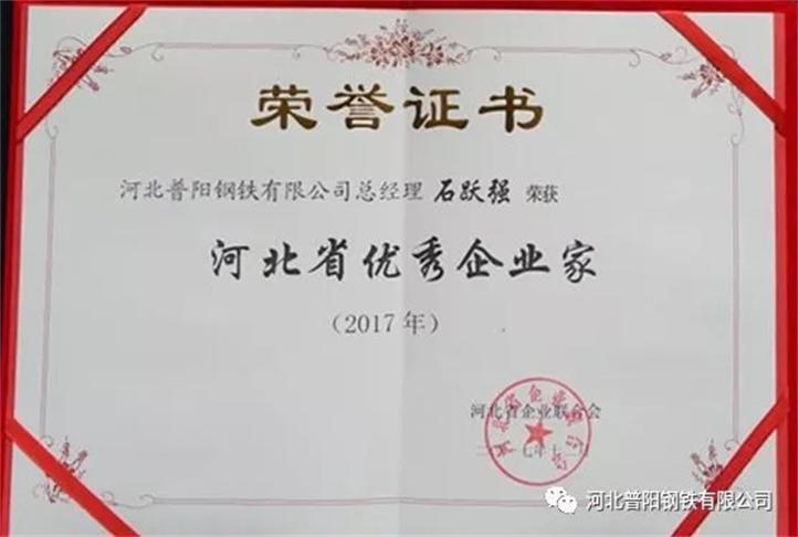 近日,河北省企業(yè)聯(lián)合會表彰全省“明星企業(yè)”大會在石家莊市中山賓館召開,我公司副經(jīng)理王瑞華應邀出席了會議。會上,我公司被評為“河北省明星企業(yè)”,是為數(shù)不多的鋼鐵企業(yè)之一,彰顯了我公司的實力和競爭力。與此同時,我公司總經(jīng)理石躍強被評為“河北省優(yōu)秀企業(yè)家”,辦公室主任楊建軍被評為“河北省企業(yè)聯(lián)合會先進工作者”。