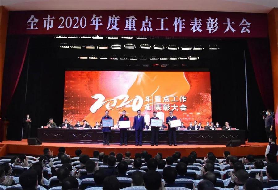 3月9日上午,全市2020年度重點(diǎn)工作表彰大會(huì)在武安賓館召開。大會(huì)對(duì)全市上年度工作進(jìn)行全面總結(jié),對(duì)作出突出貢獻(xiàn)的先進(jìn)集體和個(gè)人進(jìn)行隆重表彰。河北普陽鋼鐵集團(tuán)榮獲武安市2020年度“經(jīng)濟(jì)建設(shè)杰出貢獻(xiàn)獎(jiǎng)”,集團(tuán)黨委副書記、總經(jīng)理石躍強(qiáng)參加會(huì)議并上臺(tái)領(lǐng)獎(jiǎng)。