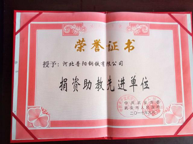 近日,中共武安市委,武安市人民政府為我公司頒發(fā)了“捐資助教先進(jìn)單位”榮譽證書,我公司被評為2017年度“捐資助教先進(jìn)單位”。