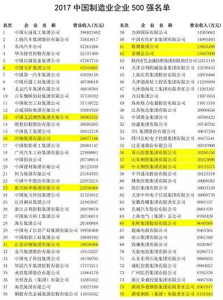 在同時(shí)發(fā)布的“2017中國(guó)制造業(yè)企業(yè)500強(qiáng)”名單中,鋼鐵及相關(guān)行業(yè)中共有73家企業(yè)上榜,具體上榜名單如下圖標(biāo)黃色企業(yè)部分所示——