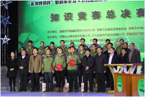 在12月12日結(jié)束的“永洋特鋼杯”邯鄲市學(xué)習(xí)《節(jié)約能源條例》和《減少污染物排放條例》知識(shí)競賽中,一路殺入決賽,取得了第一名的好成績。