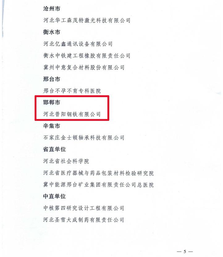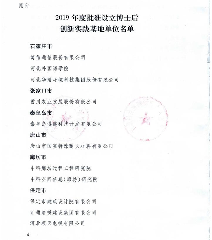 近日,根據(jù)《河北省人力資源和社會保障廳、河北省博士后工作管理委員會【2019】311號》文件公示,全省共有23家單位獲批設立博士后創(chuàng)新實踐基地,其中河北普陽鋼鐵有限公司榜上有名,是邯鄲市今年唯一入選的鋼鐵企業(yè)。