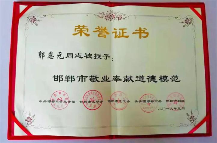 近日,由邯鄲市委宣傳部、市文明辦、市總工會、團(tuán)市委、市婦聯(lián)聯(lián)合舉辦的“邯鄲市第七屆道德模范頒獎典禮暨2019年度新時(shí)代好少年先進(jìn)事跡發(fā)布會”,在市廣播電視臺演播大廳舉行。會議表彰了對推進(jìn)全市精神文明建設(shè)做出突出貢獻(xiàn)的企事業(yè)單位和個(gè)人,全國十大杰出企業(yè)家、全國鋼鐵工業(yè)勞動模范、普陽鋼鐵集團(tuán)黨委書記、董事長郭恩元榮獲“邯鄲市敬業(yè)奉獻(xiàn)道德模范”榮譽(yù)稱號。