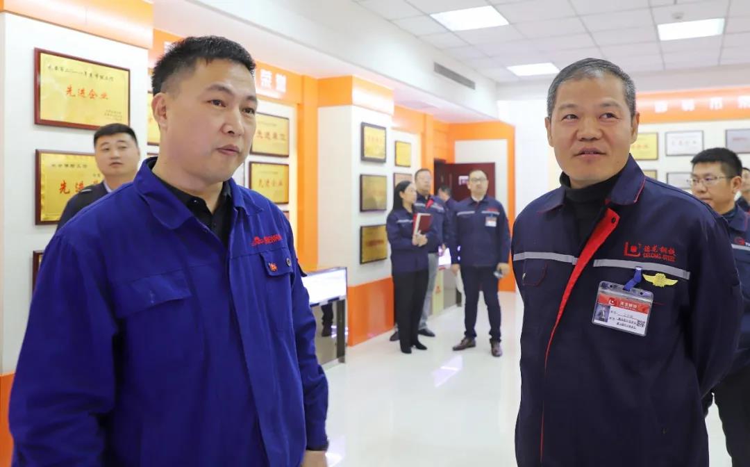 10月26日下午,德龍集團董事長丁立國、慈弘慈善基金會理事長趙靜帶領新天鋼、德龍集團高層領導一行19人蒞臨普陽對標交流。普陽鋼鐵集團黨委副書記、總經理石躍強,總經理助理石現英、人力企劃部部長高文彩、生產部長李紅超及財務部相關負責同志全程接待。