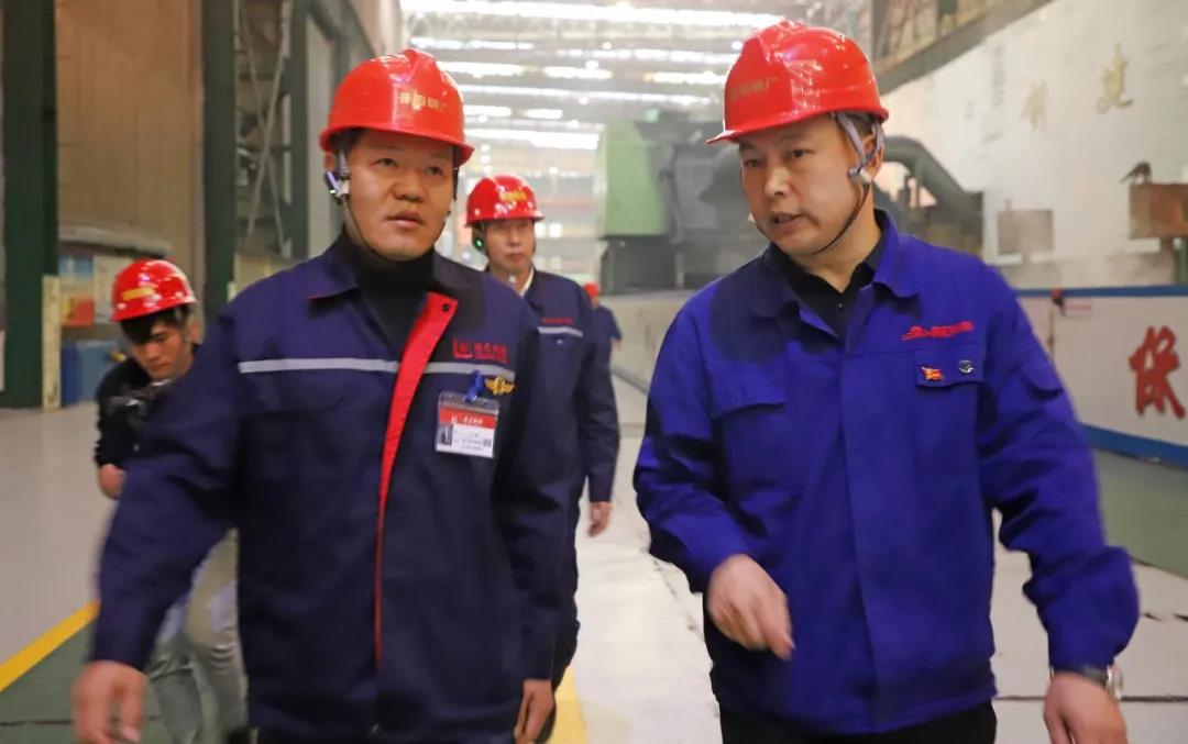 座談結束后,石總陪同丁董一行參觀了普陽沙盤模型展、風雨四十年廠史展,并到二期中板生產車間實地調研。