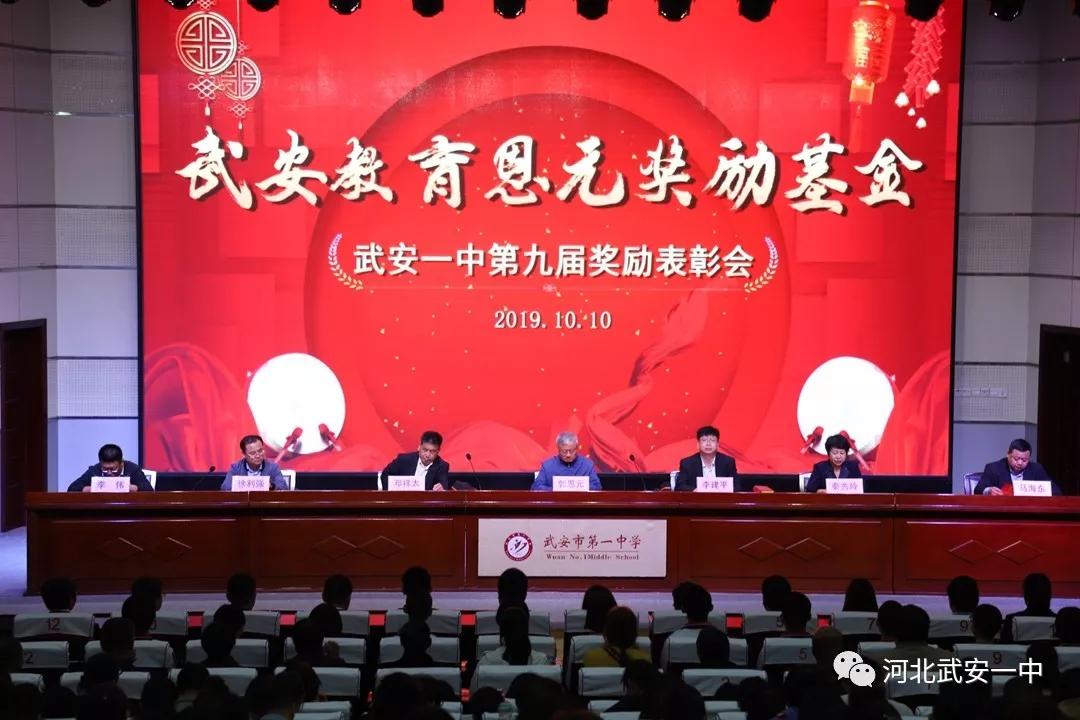 10月10日下午,武安一中在學(xué)術(shù)報(bào)告廳隆重舉行第九屆恩元獎(jiǎng)勵(lì)基金頒獎(jiǎng)大會。河北普陽鋼鐵集團(tuán)黨委書記、董事長郭恩元,武安一中名譽(yù)校長、“恩元獎(jiǎng)勵(lì)基金”事務(wù)執(zhí)行人鄧祥太老師出席大會。學(xué)校領(lǐng)導(dǎo)李建平、秦秀玲、徐利強(qiáng)、馬海東、李偉出席大會。
