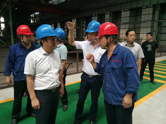 7月28日上午,武安市政府副市長馬曉斌、環(huán)保局張文慶、陽邑鎮(zhèn)楊貴寶等領(lǐng)導(dǎo),到我公司調(diào)研2017年大氣污染綜合整治項目實施進(jìn)度情況。公司總經(jīng)理石躍強、副總經(jīng)理李成安、環(huán)??崎L李劍春陪同調(diào)研。圖為公司總經(jīng)理石躍強陪同馬曉斌副市長參觀中厚板車間美化、亮化工程改造情況。