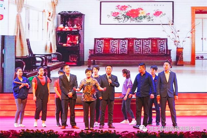 由普陽人自編自演的歌伴舞、啞劇、小品、朗誦等節(jié)目,通過演員們激情的表演,表現(xiàn)的淋漓盡致,展現(xiàn)出了社會主義新時代的幸福場景,也表達了普陽人對祖國的熱愛。由全體演職人員共同高歌的《普陽之歌》,把晚會推向了高潮,隨后,陽邑鎮(zhèn)領(lǐng)導(dǎo)和公司領(lǐng)導(dǎo)上臺與演職人員合影,董事長郭恩元與演員們親切握手。