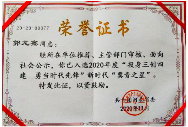 普陽(yáng)團(tuán)委書(shū)記、副總經(jīng)理郭龍?chǎng)萎?dāng)選“冀青之星”