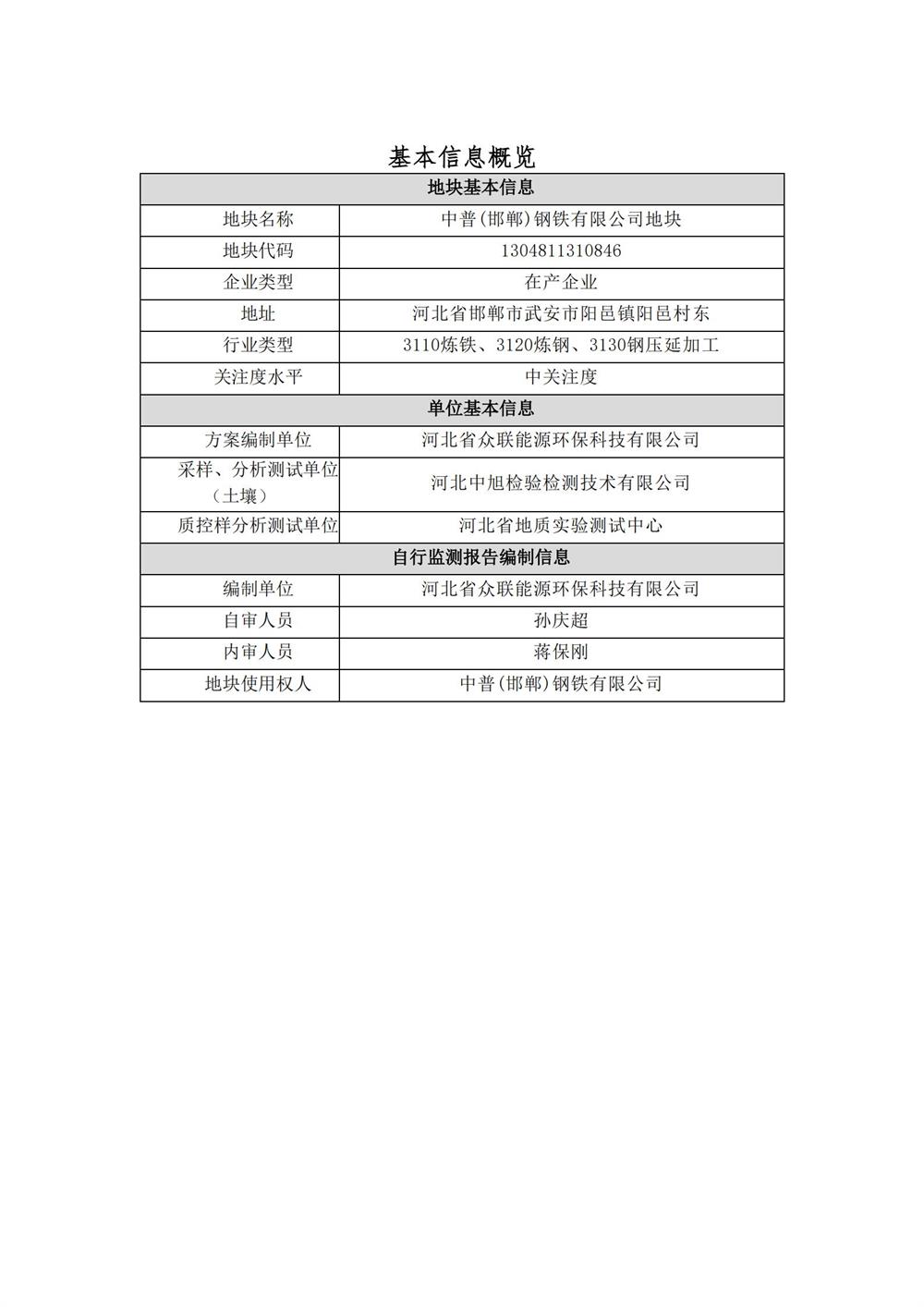 中普(邯鄲)鋼鐵有限公司地塊土壤環(huán)境自行監(jiān)測報告