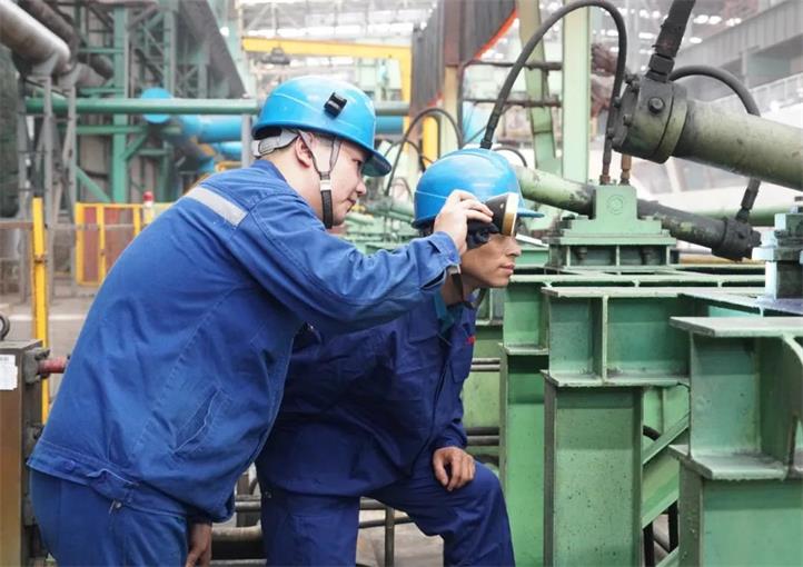 曾經(jīng)有一段時間,熱卷車間除鱗箱體頂部總是被高壓水擊穿。一開始郭超和工友們只是哪兒破就補哪兒,可剛補好,沒兩天就又被擊穿。郭超琢磨著可能是修補材料不行,就換成不銹鋼。然而,更換修補材料之后,效果依舊不好。不服輸?shù)墓愣自诔[箱體旁邊,觀察過鋼情況,慢慢地,他發(fā)現(xiàn),由于噴淋帶(除鱗集管)的寬度是一定的,而鋼坯的寬度是變動的,這就導(dǎo)致在高壓水除鱗時,超出鋼坯寬度的那部分高壓水就直接打在了除鱗箱體頂部,正因為這樣,擊穿的位置總是兩側(cè)更多一些。了解到這一情況后,郭超和工友們將厚一些的鋼板焊接在除鱗箱體內(nèi)部,并將兩側(cè)加厚。由外補改成內(nèi)擋,一個困擾大家很長時間的問題,通過用心觀察工藝,得到了有效的解決。郭超說,這件事兒對他的觸動很大,讓他認(rèn)識到,學(xué)習(xí)提高總會經(jīng)歷“從外到內(nèi)、由表及里”的過程,中間會走一些彎路,但只要用心總結(jié),所走的每一步就都有用。關(guān)鍵是,要盯住問題不放,不能一直停留在“頭痛醫(yī)頭、腳痛醫(yī)腳”的程度。