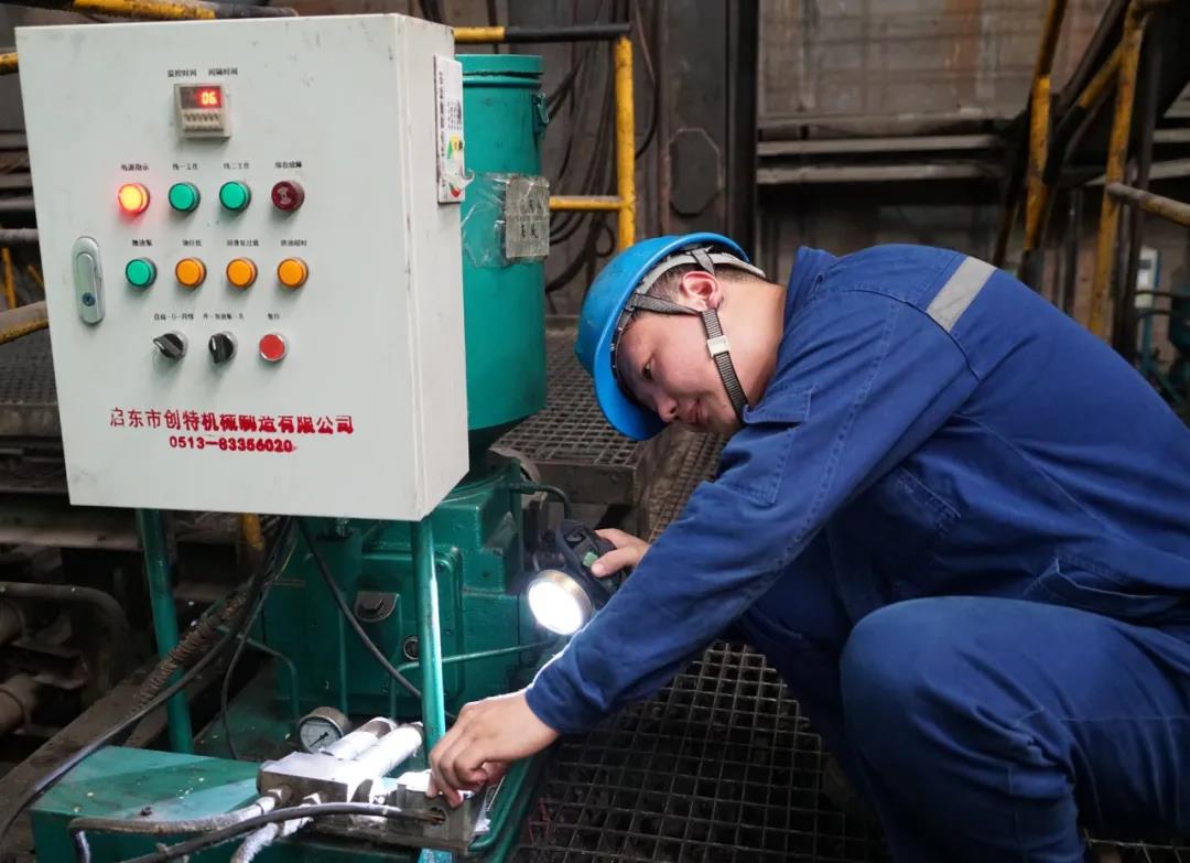 有一次,卷曲段一個控制冷卻水的氣動蝶閥總是頻繁故障,不是打開關(guān)不住,就是關(guān)住打不開。經(jīng)拆檢,發(fā)現(xiàn)是蝶閥軸桿斷裂所致,郭超便琢磨是什么導(dǎo)致軸桿斷裂的。于是,他站在閥門跟前仔細(xì)觀察閥門的每一次開關(guān)的過程。他發(fā)現(xiàn)由于閥門關(guān)閉速度過快,產(chǎn)生的“水錘”沖擊,作用于閥體對閥門的損害很大,可能是軸桿斷裂的原因,找到問題的關(guān)鍵點后,郭超便開始尋找如何讓閥門實現(xiàn)“快開慢關(guān)”這一動作來消除“水錘”現(xiàn)象。終于,當(dāng)他看到自動打包機(氣動控制)機頭在接近熱卷速度能夠突然變慢時,他知道自己找到了讓閥門關(guān)閉速度變慢的方法。最后,他把同樣的氣動控制原理運用到冷卻水的氣動蝶閥上,通過改變氣道,減緩排氣速度,達(dá)到了預(yù)期效果,很好地避免了該閥門的頻繁損壞。“這次小技改,讓我深刻地認(rèn)識到,創(chuàng)新不是憑空想象,它離不開對現(xiàn)有工藝設(shè)備的深入了解以及對先進(jìn)技術(shù)的靈活運用,其實,很多創(chuàng)新都是建立在原有技術(shù)之上的‘老壺裝新酒’”關(guān)于創(chuàng)新,郭超如是說道。