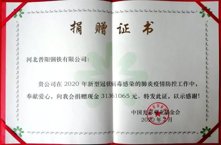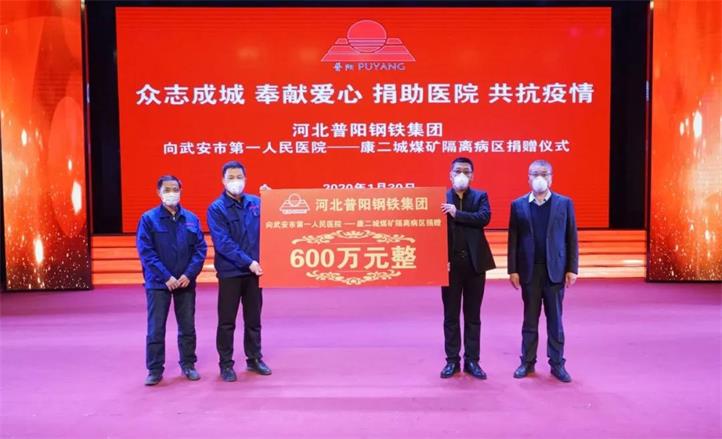 其中,通過(guò)中共武安市委統(tǒng)戰(zhàn)部和市工商聯(lián)向中國(guó)光彩基金會(huì)捐獻(xiàn)人民幣3136.25萬(wàn)元(含員工捐款136.25萬(wàn)元),定向用于武漢地區(qū)的疫情防控工作。為大力支持武安市疫情防控工作,普陽(yáng)鋼鐵集團(tuán)向武安市第一人民醫(yī)院(康二城煤礦隔離病區(qū))捐獻(xiàn)人民幣600萬(wàn)元,定向用于采購(gòu)必備的醫(yī)療物資。
